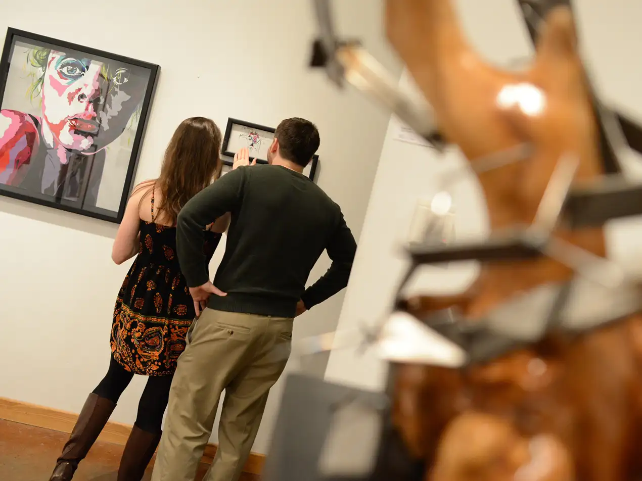 One of the highlights of our program is our professional-quality gallery for student exhibitions, senior shows, and exhibitions by faculty and visiting artists. Our show openings are festive, fun events popular with the entire campus and the community.