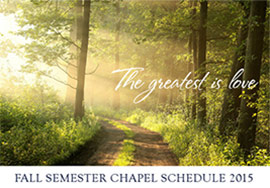 August 27, 2015 (Jackson, Miss.) - Belhaven University is pleased to announce its 2015 Fall Chapel Schedule.The purpose of chapel at Belhaven is to bring together the entire campus to worship, discover and experience the living relationship we have with Christ in a spiritually enriching hour.