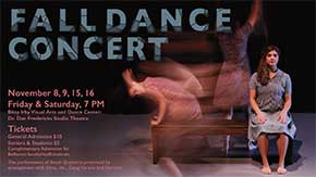 The Fall Dance Concert 2019 will be in the Bitsy Irby Visual Arts and Dance Center Theatre.