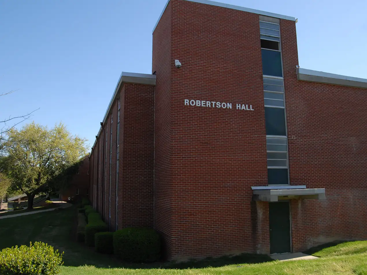 Robertson Hall is one of two residence halls for men and houses 130 residents, mainly upperclassmen in rooms that are approximately 11'6" by 16".